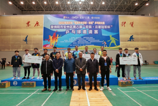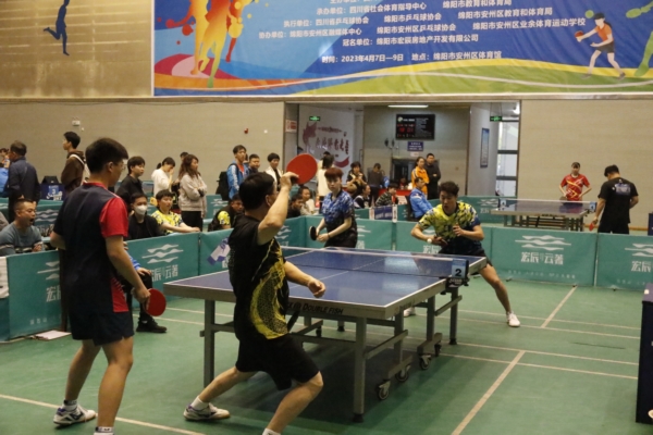 四川新闻网消息(熊艳 记者 杨宗友)4月8日,2022年四川省“百城千乡万村.社区”乒乓球大赛暨绵阳市安州区第八届“宏辰.云著冠军杯”乒乓球邀请赛在安州体育馆开赛。