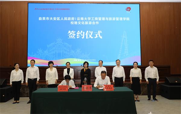 仪式上,自贡市大安区人民政府、自贡市大安区文化广播电视和旅游局分别与云南大学工商管理与旅游管理学院和北京市东城区文化广播电视和旅游局签订合作战略框架协议。