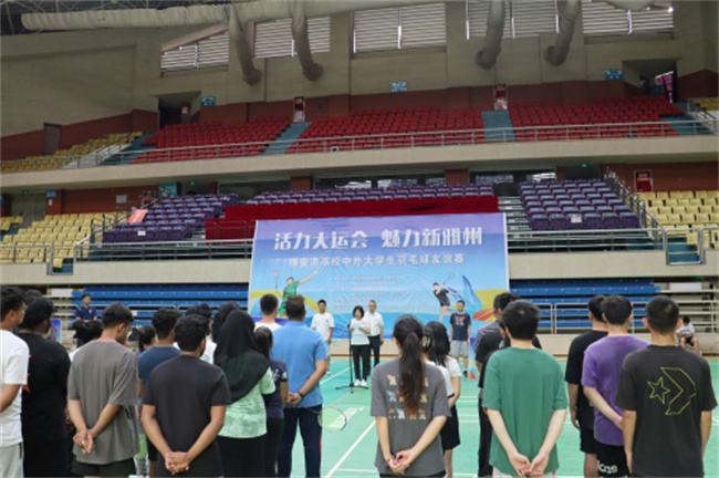比赛分为男女单打、男女双打、混双。“我宣布雅安市高校中外大学生羽毛球友谊赛正式开幕!”随着开幕宣布,比赛正式开始。