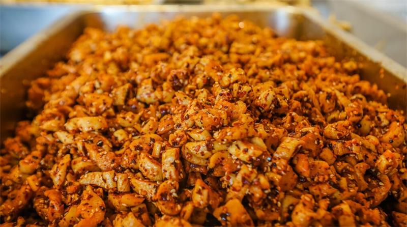 四川新闻网消息 将成佳镇的大头菜辅以数十种本地特产调味料,再加上必不可少的辅料——贡井井盐,采用古法自然风干、手工分切、初腌、翻腌、三腌扑坛发酵、碾压辅料等复杂传统方法制作……位于贡井区成佳镇的龙须淡口菜技艺非遗工坊内,20余名员工在工坊负责人罗淮良的带领下正在制作龙须淡口菜。