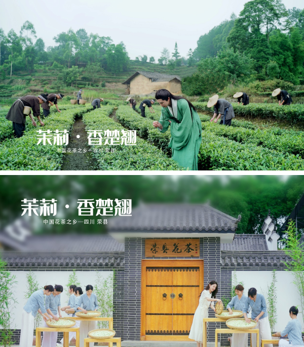 “窨得茉莉无上味,列作人间第一香”。据了解,荣县新建的第一个茉莉花示范基地-“五里花丘”在MV视频里多次出现。茉莉花语种植公司相关负责人介绍,公司逐步形成一二三产业融合,修建了手工花茶体验工厂,让大家都可以亲身感受采花,窨花,炒茶全过程,体验亲手制作“一杯花茶的味道”。未来公司还将引入其他茶用香花品种,让“五里花丘”香满四季;同时建好“荣县花茶”体验馆,供大家有一处喝茶、品茶的空间,供各地游客感受茶文化的氛围;搭建直播平台,联合外部资源,努力推广,让更多人了解“荣县花茶”,品尝荣州茶味。