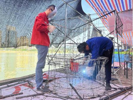 “为保质保量完成彩船制作,我们正加班加点。”焊接工人李彬介绍,制作现场搭建了遮阳棚,棚内配备了大量风扇、消防设备和救生设备等。