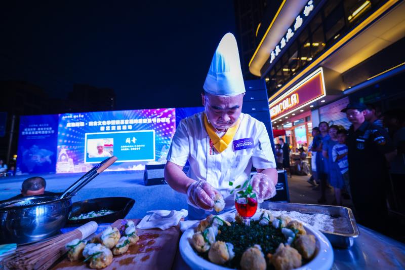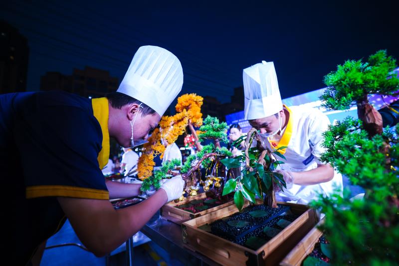 荣州麻辣鸡、双荣相系、荣州陶罐飘香、米香羊肉酥,白鹅戏水、奇香兔腿、荣香红烧肉、傣味富贵罗氏虾……开幕活动上,来自荣县、荣昌区两地的名厨纷纷披挂上阵,用高超的厨艺和满满的热情现场展示两地特色美食。为了让好吃客们纵享欢乐,活动现场设置了可同时容纳300人的用餐区域和15个美食展位,同时发放餐饮消费券和啤酒券。