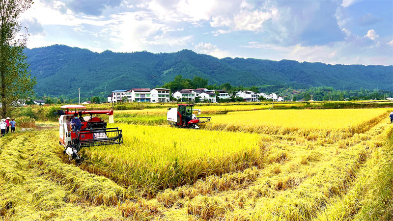 近年来,宣汉县大力实施“农业兴县”战略,以“稳定面积扩产能、调优结构提品质、轻简节本增效益”的方式助力水稻高质高产,大力推进水稻高产示范片、粮油现代农业园区、高标准农田区种植,积极开展农业社会化服务,实施全程机械化作业,采取“互联网+稻谷”电商销售,推进农业现代化,促进农民发家致富。目前,宣汉县51.65万亩水稻陆续收割,预计产量约25万吨。