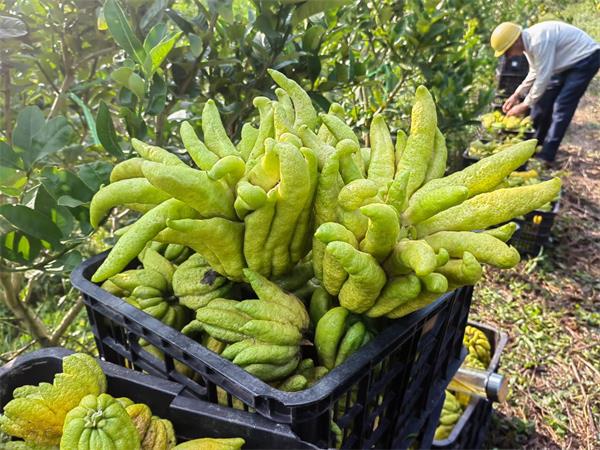 李桥镇腰塘村,当前正值佛手柑开始成熟的季节,形如手指相握的佛手柑,正沉甸甸地挂在枝头。当地通过种植佛手柑,把撂荒地盘活了,村里的产业也发展起来了,村民们的钱袋子也逐渐鼓起来了。腰塘村村民熊俊祥说:“自从咱们村发展了佛手柑产业,不仅盘活了撂荒地,也拓宽了我们的收入渠道,实现了在‘家门口’就业。我现在既可以收租金,又可以收佣金,两种途径增加收入。”