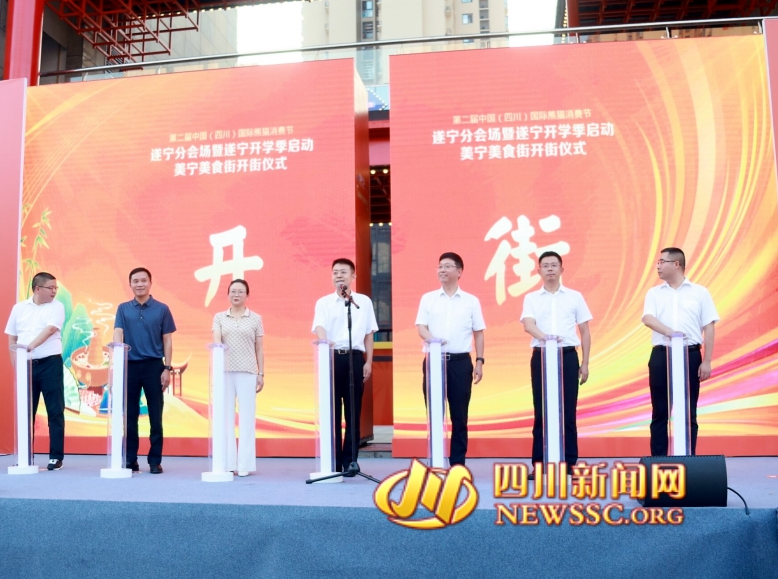 四川新闻网消息(袁方绪图/文)8月31日,第二届中国(四川)国际熊猫消费节遂宁分会场暨遂宁开学季·美宁美食街开街仪式举行。遂宁市委副书记、遂潼涪江创新产业园区党委书记景临出席活动并宣布活动正式启动,遂宁市人民政府副市长张智勇主持活动。