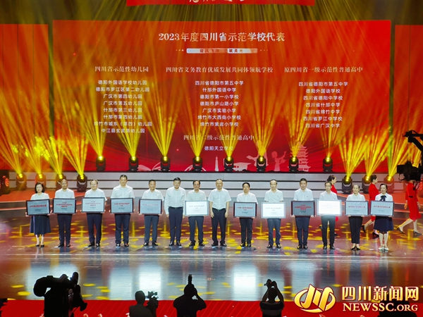 活动现场为2023年度德阳市优秀教育工作者代表、2023年四川省优秀教师代表、2023年度四川省示范学校获奖代表颁奖。