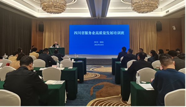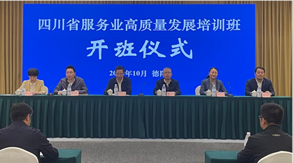 四川新闻网消息 近日,全省服务业高质量发展培训班在德阳举办。省商务厅党组成员、副厅长陈友清,省统计局党组成员、副局长曾俊林出席开班仪式,德阳市委常委、市政府副市长陈景峰致辞。省商务厅、省发改委有关处室负责同志,各市(州)商务部门、全省服务业高质量发展示范区所在区县有关负责同志70余人参加培训。