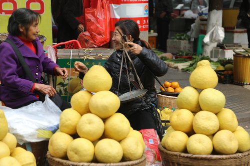 四川新闻网消息 赤水河畔,柚子飘香。作为合江县三大特色产业之一的真龙柚,是合江人冬日待客的必备之选,在义园街真龙柚交易市场,前来挑选柚子的顾客络绎不绝,农户们的脸上挂满了丰收的喜悦。