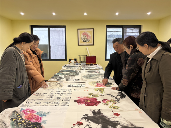 授牌仪式结束后,在场政协委员和文艺爱好者深入梁延中委员工作室,参加书画创作交流活动。活动现场,文艺爱好者以翰墨为媒、以丹青抒怀,用心用情创作讴歌时代之美、自然之美、人文之美、奋斗之美的精品力作。不一会儿,一幅幅功力深厚、风格迥异的书画作品跃然纸上,书法作品沉着雅逸、豪迈大气,山水画形神兼备、生机盎然,花鸟画栩栩如生、魅力十足……作品主题鲜明、寓意深远,既融入政协元素,又充满时代气息,生动展现了郭沫若故里现代化建设和高质量发展的蓬勃生机,抒发了人民群众对更加美好生活的热切向往。