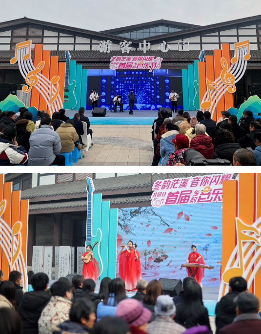四川新闻网消息(记者 李举涛 摄影报道)12月29日下午,乐山市井研县千佛镇雷氏民居游客中心,歌声欢声交织,果香墨香交融。元旦佳节来临之际,井研县举办首届乡村音乐节,欢欢喜喜迎新年。