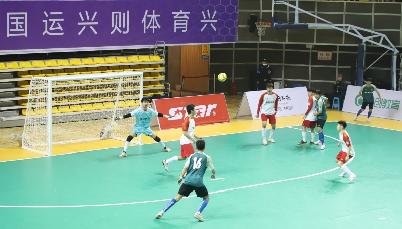 武汉工商学院啦啦队表演暖场节目后,比赛正式开始。身穿白红色球服的清华大学和绿黑色球服的浙江理工大学开启对决,双方开场都采取积极进攻的战术,你来我往,场面十分胶着。最终,清华大学以点球4比3战胜浙江理工大学。