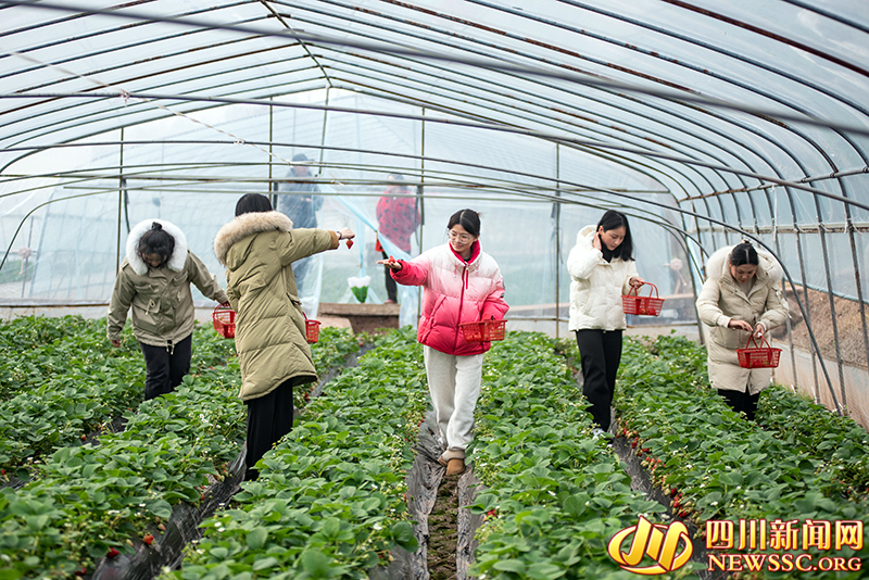 四川新闻网消息(胡智 王建军 文/图)“终于吃到石板凳的草莓了。快来,这里的草莓巴适得板!”在成都东部新区石板凳街道菜子村的智慧农业产业园,硕大饱满、鲜红欲滴的草莓泛出诱人的光泽,绿叶红果“养眼”十足。从资阳城区驱车前来的市民周艳一边摘着草莓一边打电话“摇人”。