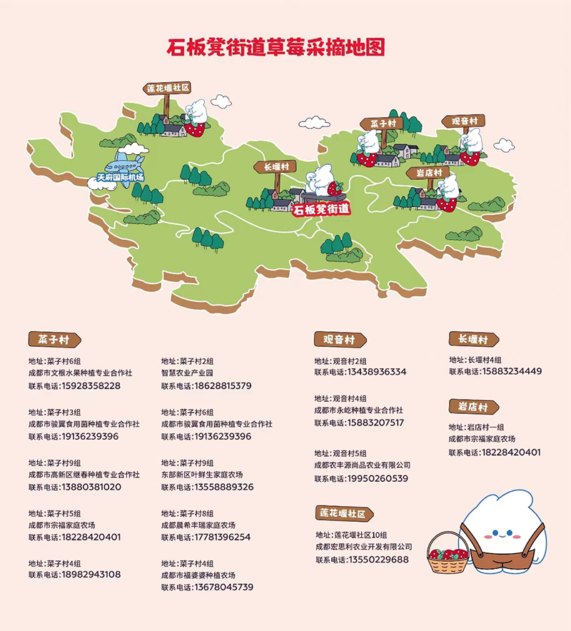 据了解,石板凳街道连续10多年举办了以草莓为主题的采摘活动,有力地推动了产业振兴带动乡村振兴,展示了融入新区后石板凳街道群众的良好精神风貌,引领了文化生活新风尚。该街道还以功能布局为引导画好四个“园”(“智慧草莓种植+特色消费场景”园区、“航空主题+体验式农耕”园区、优质绿色有机蔬菜种植园区、脱贫帮扶产业园区),着力打造菜子村锦绣田园消费场景,着力实施“公园式民宿项目”,推动石板凳乡村振兴产业体系实现“接二连三”。