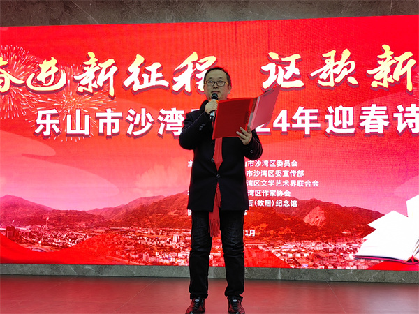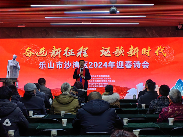 在传统新春佳节即将来临之际,为满足沫若故里群众文化需求,营造沙湾作为诗意栖居地的浓厚氛围,沙湾区政协会同区委宣传部、区文联,举办以“奋进新征程˙讴歌新时代”为主题的沙湾区2024年迎春诗会。诗会现场,由区政协委员、区作家协会会员等组成的20多名文学诗词爱好者,通过创作抒怀、朗诵分享,赞美春的美好,歌颂沫若故里人民建设美丽沙湾的奋斗精神,壮志满怀共赴充满诗意的春日盛宴。