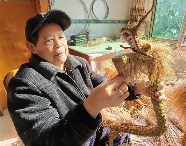 一根根普普通通的稻草,经过叶正宣的巧手编扎可谓“脱胎换骨”。组装好的整条龙仿佛随时可以腾云驾雾,被誉为“全国屈指可数的以稻草为主要原材料制作的草龙艺术精品”。