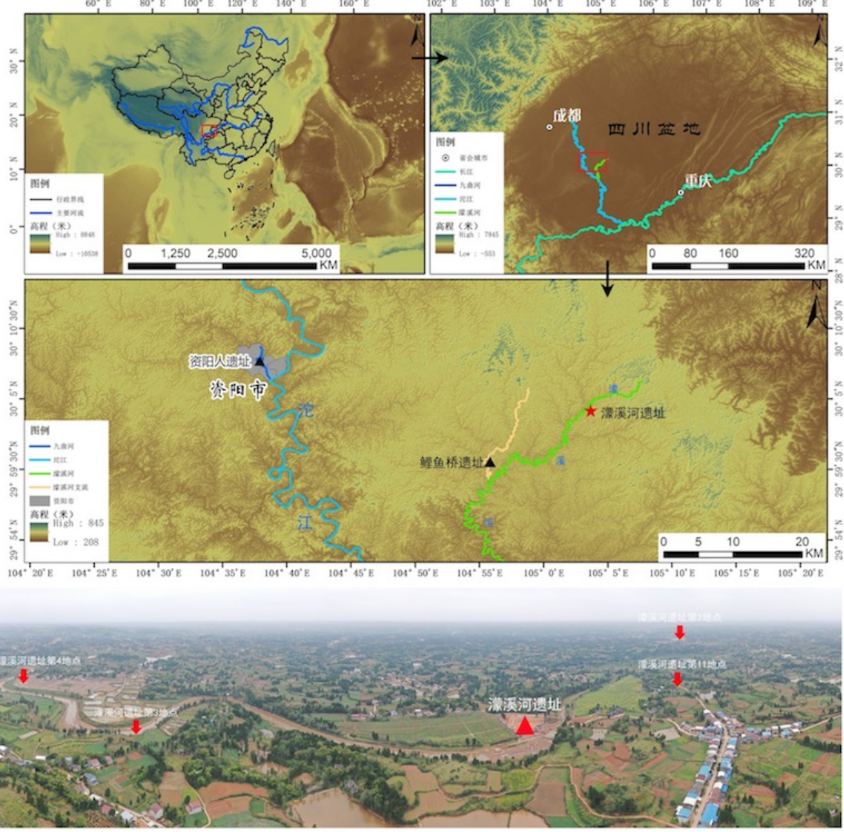 濛溪河遗址位于资阳市,西距资阳人遗址约35千米。经光释光初步系统测年,濛溪河遗址距今约5万—7万年,处在现代人起源扩散的关键阶段。因遗址位于水边,文化层分布在濛溪河现在的平水位以下,为特殊的饱水埋藏环境,得以保留大量有机质材料。迄今为止,遗址已出土石器、动物化石及碎屑10.5万余件,另有数以万计的植物遗存和少量木器、骨器及其他遗存。此外,遗址还发现了人类用火、切割、刻划、琢制等痕迹。