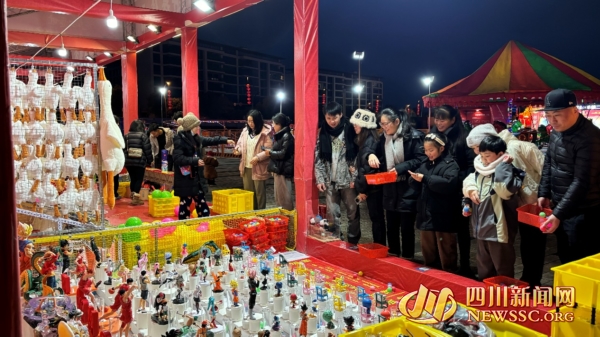 “新春集市”人头攒动,套圈游戏摊位前热闹非凡。