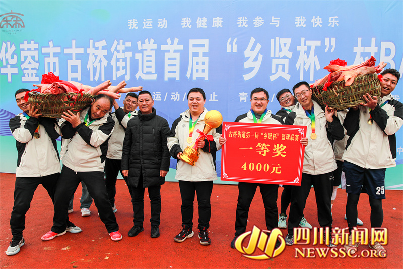 四川新闻网消息(冉鹏 邱海鹰 摄影报道)2月5日,四川省华蓥市古桥街道由乡贤倡议并支持的首届“乡贤杯”篮球联赛(村BA )进入决赛并降下帷幕。各村、社区和辖区企事业单位组织的10支参赛队伍,历经13天的分组单循环和交叉淘汰赛胜出的队伍,决出了冠亚季军,并分别获得两头年猪、两只肥羊、十只活鸭的奖励。该赛事旨在推动全民健身和全民健康深度融合,丰富山区群众的文化生活,提升乡村文化自信,赋能乡村全面振兴,在欢乐中迎接新春佳节。