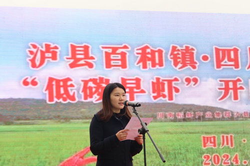 四川新闻网消息(许艺川 陈秋韵 记者 程海英)2月21日,“低碳早虾”开门红活动,在泸县百和镇四川稻虾旺公司稻渔示范基地举行。泸县农业农村局党组成员、副局长刘桂南,百和镇党委委员、副镇长邓芮伊出席并致辞。