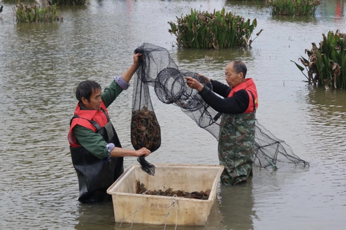 在莲枪舞龙表演中,2024年“低碳早虾”开门红活动仪式正式开始。虾笼缓慢地收拢过程中,肥大、健康的小龙虾露出水面,引来无数村民在田边注目观看,捕捞仪式的举行标志着今年泸县早虾正式开捕上市,首日捕捞达4264斤。