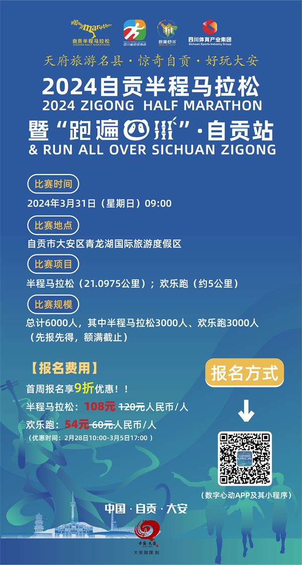 四川新闻网消息 随着春风的吹拂,自贡的春天如期而至,万物复苏,生机盎然。这是一个充满生机与活力的季节,在这个充满挑战与激情的时刻,自贡市将举办一场备受瞩目的体育盛事——2024自贡半程马拉松暨“跑遍四川·自贡站”。这场备受期待的比赛定于2024年3月31日(星期天)上午9点正式开赛,报名工作已于2月28日10:00正式启动。