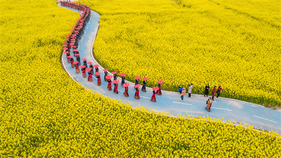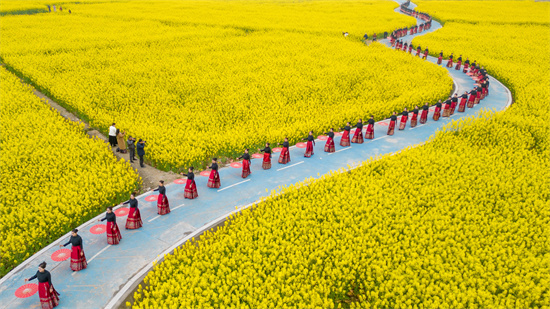 四川新闻网消息 新春伊始,万物复苏,在“三八”国际劳动妇女节来临之际,来自四川各地的一百多位汉服爱好者,相约彭山千亩湿地公园油菜花海,带来一场赏心悦目的“汉服秀” 。