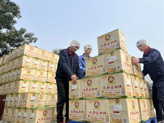 四川新闻网消息 3月3日上午,在四川省眉山市洪雅县和鑫农业科技发展有限公司厂区一派忙碌景象,工人们在叉车的配合下将一箱箱打包好的藤椒油、花椒油产品搬运至卡车上准备发货。这是该公司今年3月发出的首柜外贸订单货品,共有2000余件,即将运往欧盟市场,分发给各国经销商。