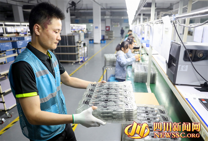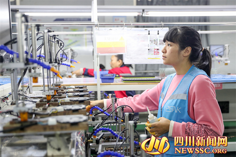 四川新闻网消息(冉鹏 邱海鹰 摄影报道)4月7日,在四川省华蓥山经开区电子信息产业园,刚休完清明小长假的四川品岱电子科技有限公司的工人,又紧张忙碌在生产车间,为重庆、广东、成都市场加工组装“订单”产品散热模组。