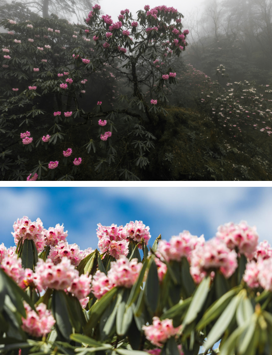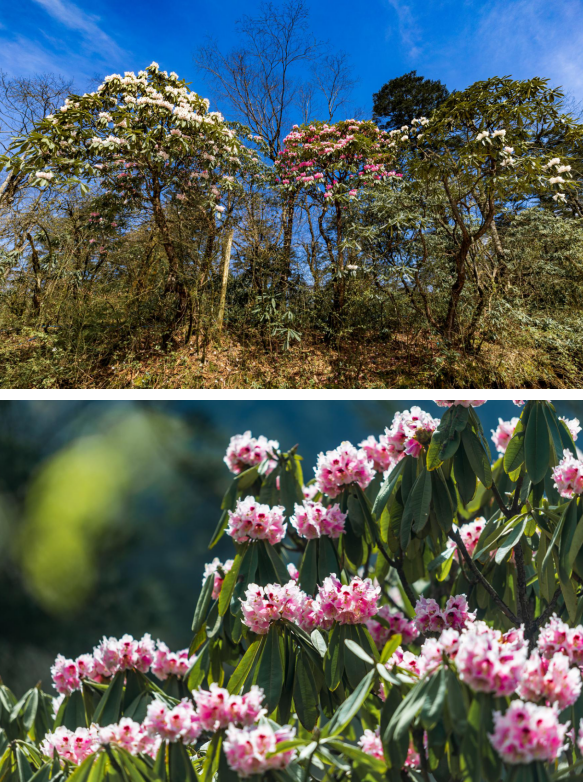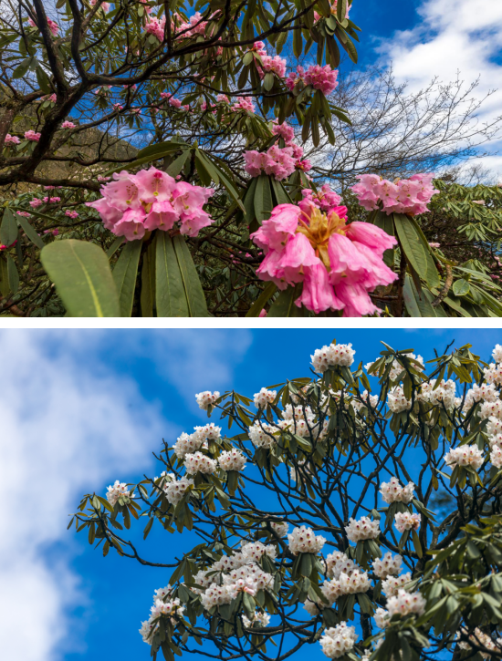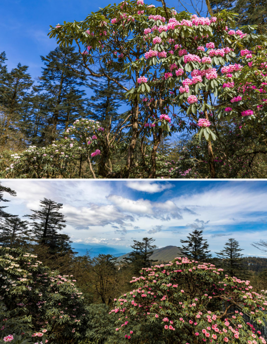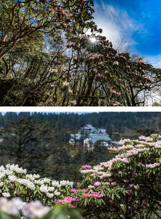 峨眉山常年云雾笼罩,细雨连绵,极适宜杜鹃花生长繁殖,素有“杜鹃王国”之称。目前,峨眉山有杜鹃花约30种,特别是海拔2000米以上的高山区,荟萃了全山近2/3的品种,每年4月至6月是观赏杜鹃花的最佳时节。