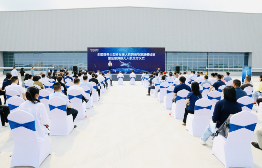 4月29日,全国首条大型多发无人机跨省物流场景试航暨应急救援无人机交付仪式自贡航空产业园成功举办。
