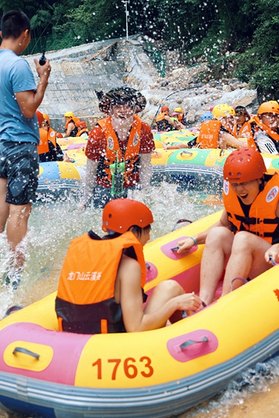 龙门山云溪谷景区林木苍翠、山幽鸟鸣,在这里既可体验激流勇进的冒险刺激,又有缓流平波可赏山悦水。沿河漂流,两岸河床怪石嶙峋,青山葱茏秀丽,宛如置身于山水画廊,迎面扑来夹杂着绿野芳香的清新空气,令人心旷神怡。“这是勇敢者的游戏,期待今夏再次来到这里体验水上版‘速度与激情’。”漂流“发烧友”们对这个总长度6.5公里、总落差229米的“动感”漂流念念不忘,意犹未尽。