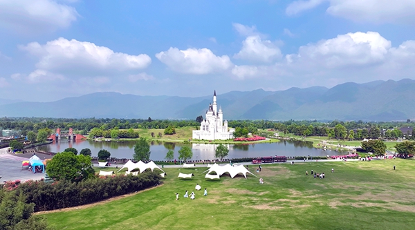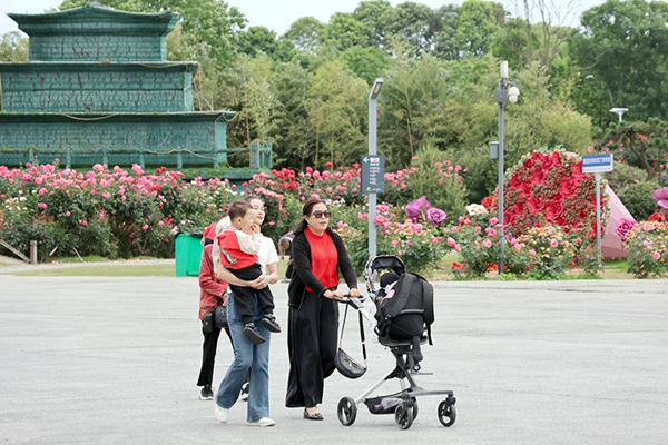 漫步月季园,五颜六色的月季花绵延数里。园中小径上,赏花的游客们或闲庭漫步,在花海中自由穿梭;或呼朋引伴拍照留念,尽情陶醉在迷人的花香中。循着阵阵欢呼声前往,玫瑰湖上,空中翻飞起舞的水上飞人特技让围观的游客惊叹不已。“在绵竹,除了赏花,还可以客居农家,品味三溪香茗,畅饮剑南美酒,参与农耕体验。”来自绵阳的游客吴杰慕名而来,只为体验一番“人在花中游、花与人相映”的浪漫。