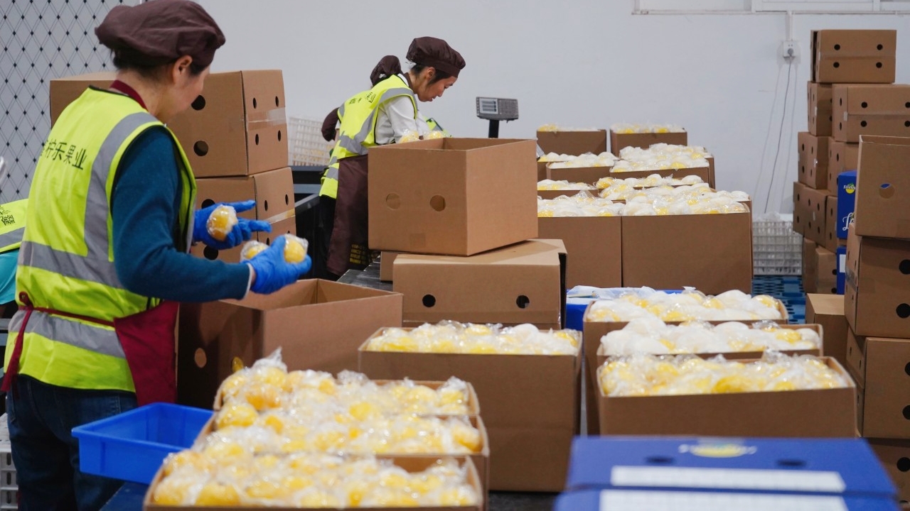 近日,在四川省鑫柠乐果业有限公司的柠檬包装分装车间里,50余名技术工人正忙着将冷链冻库里的柠檬贴标、装箱……
