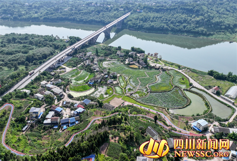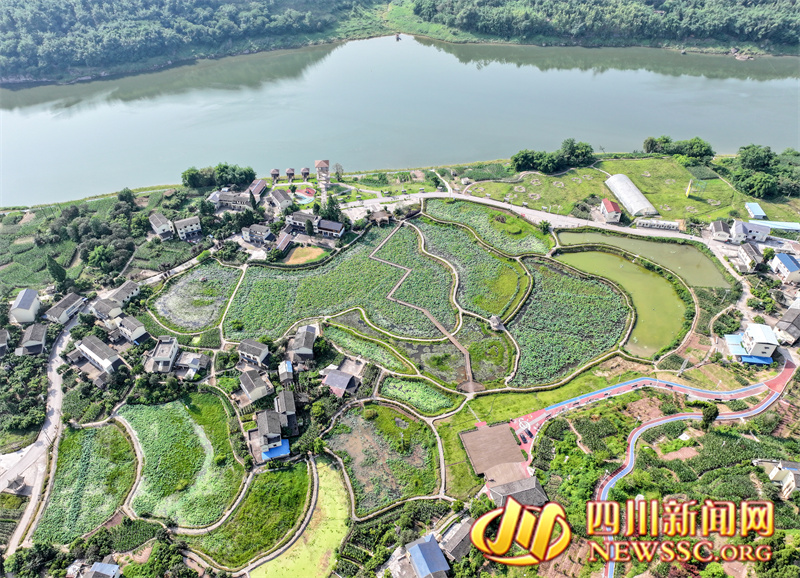四川新闻网-首屏新闻广安5月27日讯(冉鹏 邱海鹰 摄影报道)四川省华蓥市把实施渠江水环境综合治理与建设宜居宜业和美乡村有机结合,在明月镇白鹤嘴村兴建“荷月江岸”生态荷塘,在此基础上发展农家乐、特色民宿和旅游采摘等业态,让渠江变成画廊,不仅美了乡村,也带富了群众。