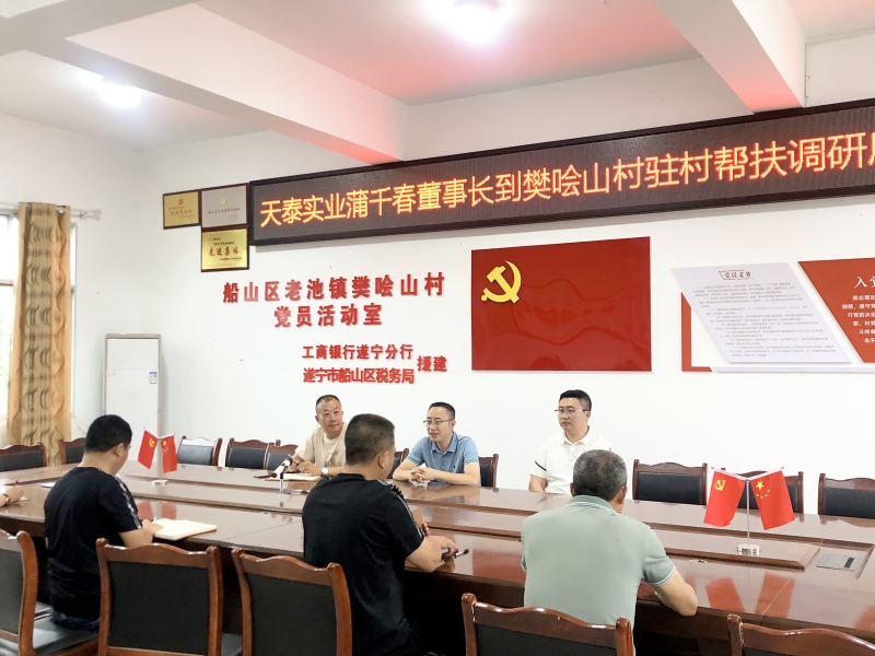四川新闻网消息 5月27日、28日,遂宁天泰实业公司党支部书记、董事长蒲千春带队前往老池镇福龙村、樊哙山村等调研指导驻村帮扶工作,并看望慰问驻村工作队员。