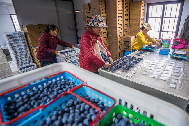 优质蓝莓不仅丰富了市民的“果盘子”,更带动了当地村民在家门口务工就业,鼓起了村民的“钱袋子”。当清晨的第一缕阳光洒向大地时,采摘工人们已经准时来到蓝莓园里,开始了一天的工作。“每年到蓝莓丰收的季节,老板都会请村民过来帮忙采摘,我们一天一个人能有100多元的收入,是份不错的工作。”江渔村村民杨大爷高兴地说。