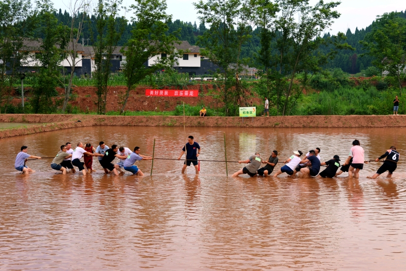 泥地拔河,拧绳而战,在泥地拔河比赛现场,呐喊声、加油声此起彼伏,各队成员齐心协力,共同拼搏,形成一幅竞争而有趣的画面。倒在泥土地里,溅了满脸的泥水,大家却笑得更开怀,在大自然中感受团队的力量。