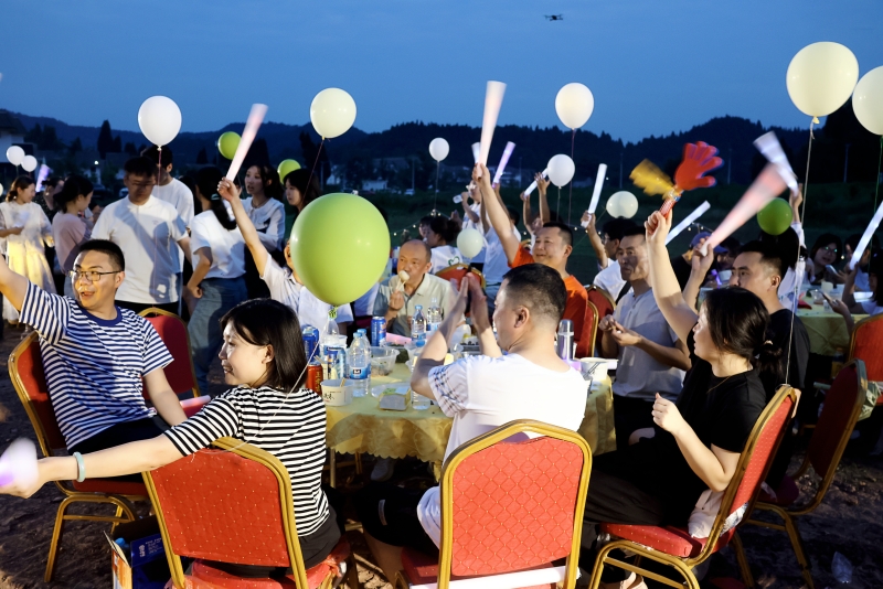 田野音乐,邻里共享,伴着落日晚霞,乘着山间晚风,乡村音乐会拉开帷幕。四川师范大学遂宁校区同学们、辖区音乐爱好者们,美妙的歌声、青春的活力把云灵新村的夜晚唱响,音符在微风中跳跃,与大自然和谐共鸣。《是妈妈是女儿》《精忠报国》《最炫民族风》《“云灵仙子”汉服秀》等节目将音乐会推向一个又一个高潮……新村朴实的居民们,围坐在田坎上,听着音乐,唠嗑家长里短,用掌声共鸣着新村的美好变化。