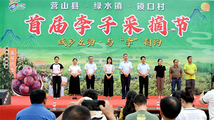 四川新闻网消息 6月24日,营山县绿水镇锁口村首届“城乡互动·与‘李’相约”李子采摘节活动开幕,来自十里八乡的游客和当地村民齐聚一堂。民盟南充市委会秘书长吴薇,营山县政协副主席罗永强出席活动。