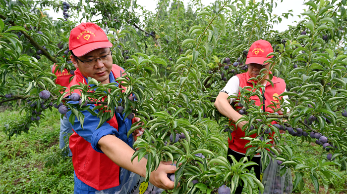 在李子园里,游客们沿着四通八达的采摘便道,穿梭于挂满李子的枝头之间。他们边摘果子边尝鲜,欢声笑语不绝于耳,尽情享受着采摘的乐趣。