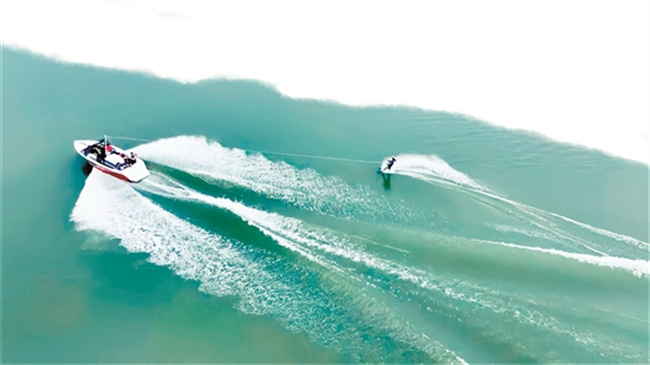 “在教练的指导下,我们了解了滑水知识,进行了陆上基础动作练习和水上训练实践,对这项运动有了初步认识。滑水既可以感受高速滑行带来的刺激,又能体会翻、转、跳、跃带来的快乐,我喜欢这项运动。”来自当地的一名学生体验者说。