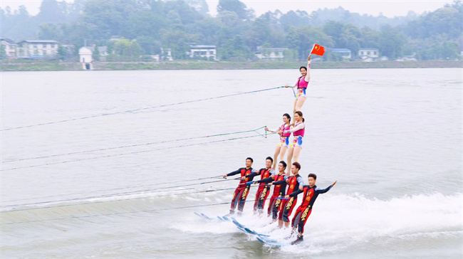 中国特技滑水队训练基地落户青神,带动了当地群众参加水上运动的热情。