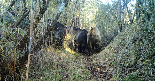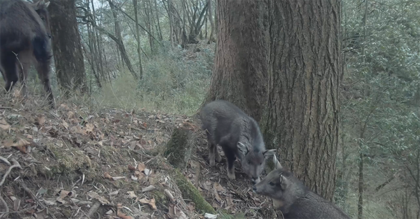 2023年11月,大熊猫国家公园绵竹片区拍摄到了羚牛群带幼崽活动的影像。在大山深处,羚牛们漫步在雪中,悠闲地散步觅食,画面十分温馨。和以往不同的是,这次出游的羚牛们身边还带着幼崽们。而在另一段视频中,一只成年斑羚与一只幼年斑羚同时出现在镜头里,小斑羚一会东看看,一会西嗅嗅,萌态十足。