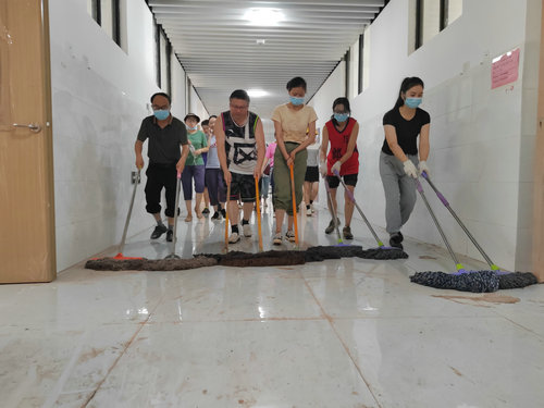 9月3日,“迎新环卫队”已连续两周对校区进行清扫与消毒。“泥巴裹满裤子,汗水湿透衣背。”是大家的真实写照。“地面干净得发亮”是大家的劳动成果。