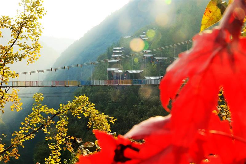 红枫与银杏黄渲染着峡谷风光 摄影 吴冰