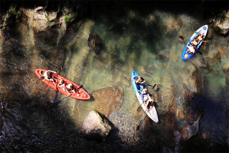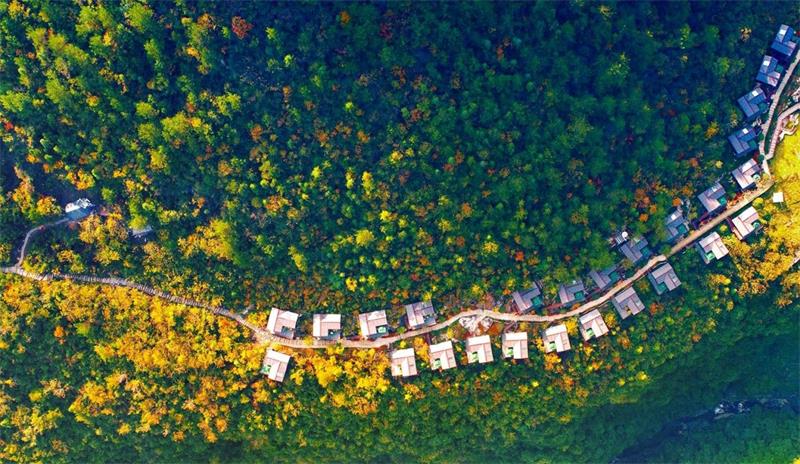 气温渐凉,山间草木染上金黄、橙红,更映得谷底碧潭清透如玉。在湖北恩施地心谷景区,游人或撑一艘小艇,或行走于玻璃栈道,与浓郁的景色构成一幅秋日画作。(供稿:恩施地心谷景区 吴冰)
