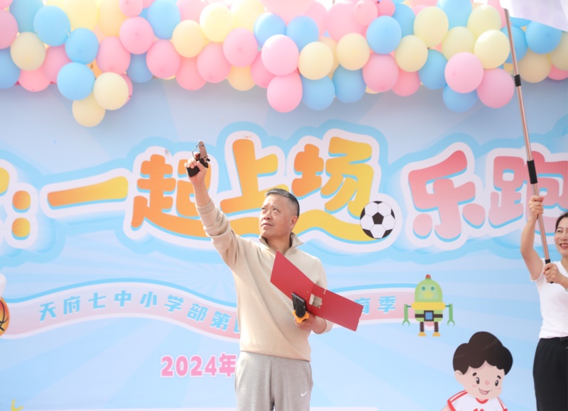 11月1日,在天府七中小学部第四届科技体育节上,一场以“我是冠军:一起上场,乐跑天府”为主题的亲子迷你马拉松火热开跑,全校师生、家长参赛。活动现场,除亲子迷你马拉松外,还举行了精彩纷呈的团体赛、个人赛及科创项目闯关体验等活动。