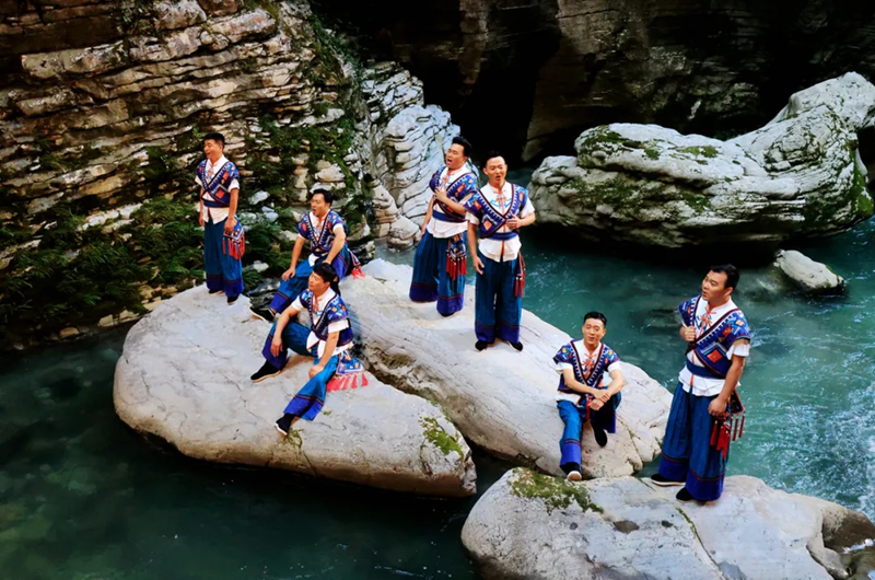 “土家稀奇哥”组合在恩施地心谷景区演唱《门前一口堰》