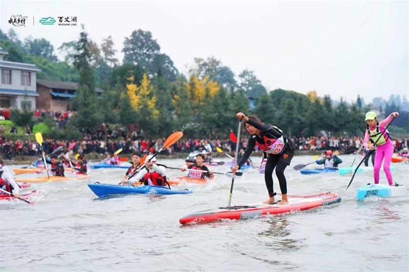 参赛选手们对百丈湖的竞赛环境和滨水体验也给予了高度评价。来自重庆崃浪水上运动俱乐部的刘发苹是一名桨板实力选手,她曾获得2024年中国桨板超级联赛汉中站、三门峡站女子大师组第一名、2023年全国桨板锦标赛大师组女子组冠军。她说:“虽然我多次参加全国各种大赛,但百丈湖给我留下了深刻的印象。湖山清丽,神秘又极尽柔美,让人心旷神怡。以后还会来参赛,带家人朋友来度假。”